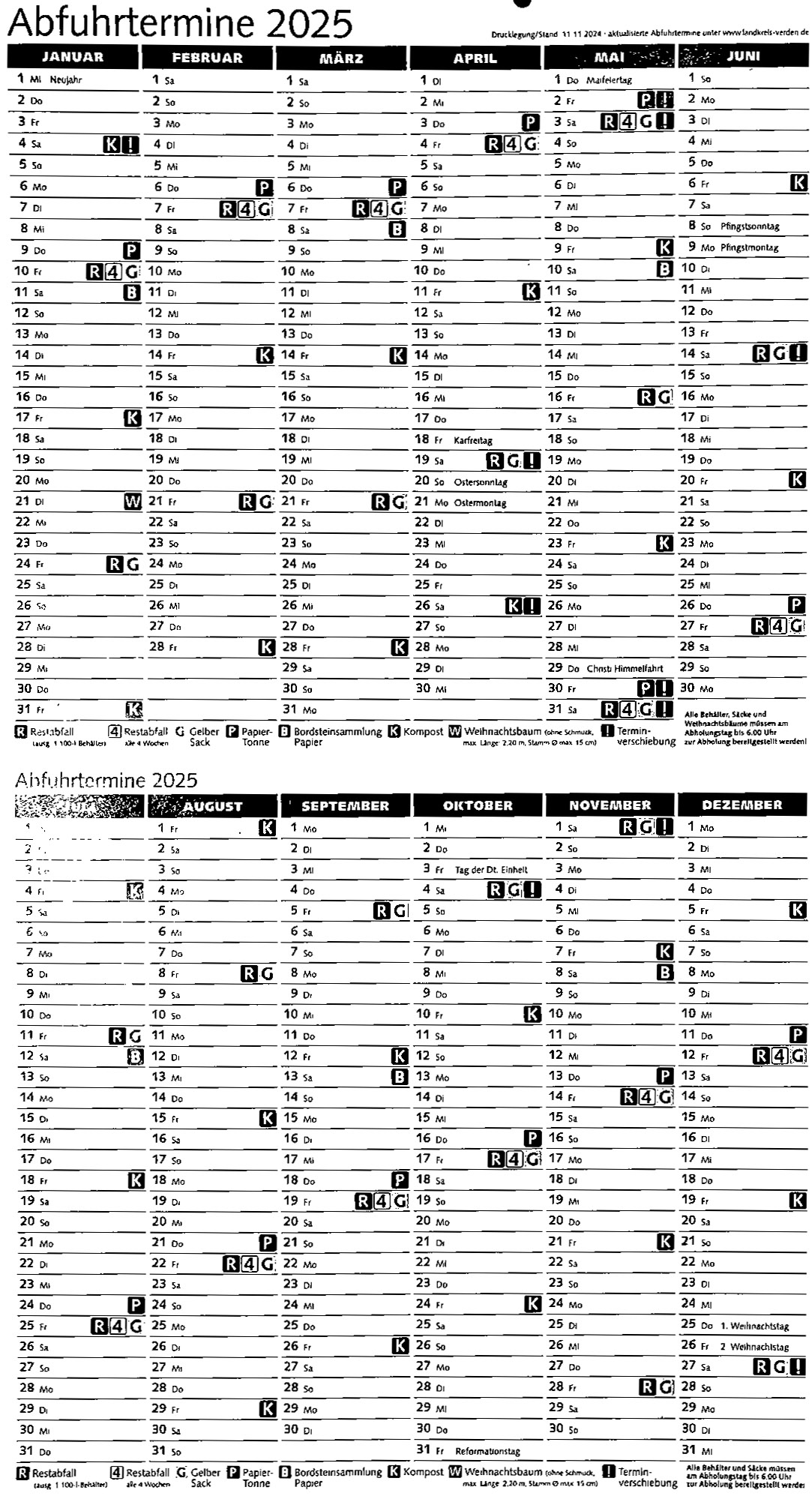 Nur Restmüll 2-Wochentakt, Gelber Sack und Bordsteinsammlung: